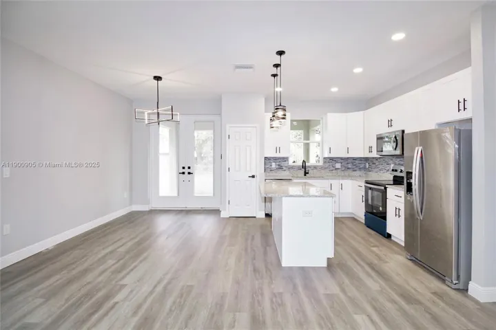 Stunning New Construction Home (2025). This modern 3-bedroom, 3-bath home offers an open-concept layout, high ceilings, and luxury finishes throughout. Experience smart home living with a Wi-Fi ceiling fan, LED mirrors with defogger, and elegant porcelain tile floors. The chef’s kitchen showcases granite countertops, a designer backsplash, and brand-new Whirlpool stainless steel appliances. Enjoy a dedicated laundry room with a utility sink for added convenience. Outdoor features include a covered lanai with ceiling fan, spacious backyard, 4-zone irrigation system, and stylish tile accents. Oversized 2-car garage with attic ladder and French doors with built-in blinds complete this move-in ready Florida dream home
