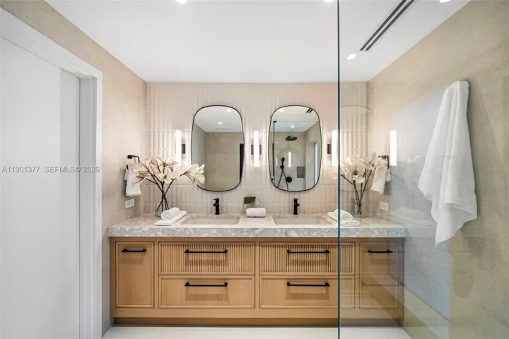 A Modern Boater’s Paradise — This exceptional waterfront residence in Coconut Grove seamlessly blends architectural elegance with contemporary comfort. Completely reimagined, the 4BR/4BA home features Italian porcelain flooring, white oak finishes, bespoke millwork, and Lutron lighting throughout. The chef’s kitchen is a showpiece with Sub-Zero and Wolf appliances, a built-in coffee system, Grand Viola marble countertops, and custom cabinetry. Thoughtful upgrades include a new roof, new impact windows and doors, and new electrical, ACs and plumbing. Outdoors, lush tropical landscaping, a sparkling new pool, summer kitchen, and integrated sound system frame 50 feet of private dockage offering direct, unobstructed bay access. Excellent location close to Brickell and Center Grove.