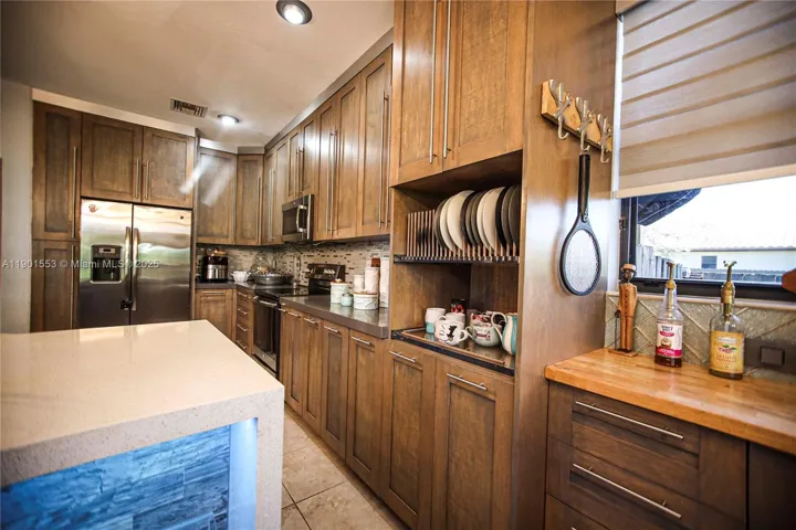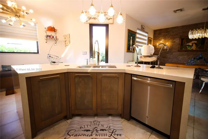 Welcome to this beautifully upgraded 5-bedroom, 3 bath corner-lot home in the desirable Silver Palms community. This residence offers a perfect blend of modern style, space, & functionality. The open layout features tile floors, spacious living & dining areas, & a stunning kitchen with ceiling-height cabinetry, quartz countertops, a waterfall island, SS appliances, a spice cabinet, plenty of storage, & a charming coffee bar. A private in-law suite on the 1st floor with a full cabana bath, ideal for guests or extended family. Upstairs, 4 bedrooms & 2 baths are complemented by elegant vinyl flooring, & a convenient laundry room. The primary suite includes a custom-built closet. The fenced backyard features an extended marble paved patio with lighting. The lot is large enough for a pool.