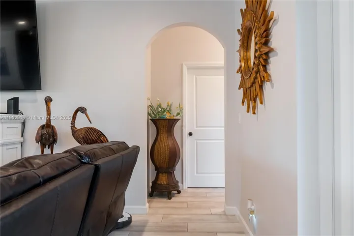 Back on the market! Captivating 2019-built CBS home near St. James with no HOA or deed restrictions. Thoughtful triple-split layout offers 4 bedrooms, 3.5 baths, and open-concept living—great flow for daily life and entertaining. Enjoy a formal dining room, large breakfast nook, and a private secondary en-suite for guests. Recent upgrades include a custom entertainment wall with recessed lighting, modern paddle fans, quartz counters, stainless steel appliances, and custom cabinetry. The oversized primary suite offers two walk-in closets and a luxurious bath. Covered lanai overlooks a semi-private backyard with ample space for a pool. See it today!