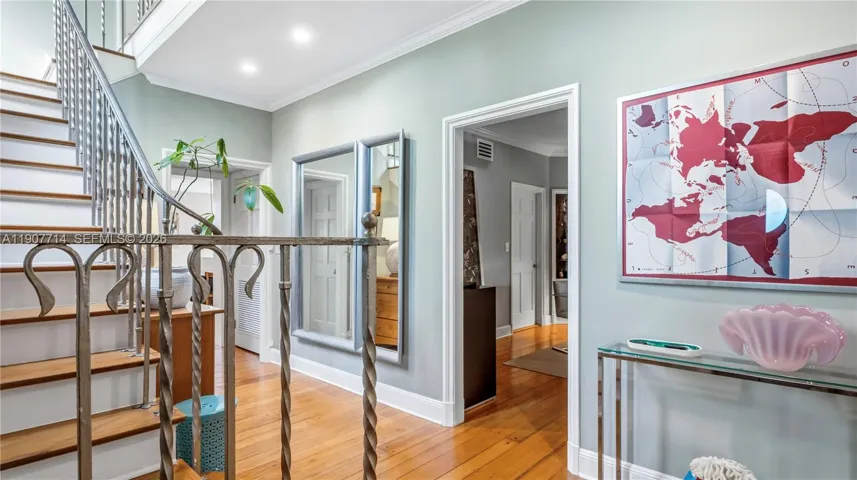 Located in the prestigious Lakeview neighborhood, this corner lot, 2 story home exudes classic charm, offering 4 bedrooms, 3.5 bathrooms, plus an oversized den/office. One full bed & bath are conveniently located on the first floor with a prvt. entrance. The gourmet gas kitchen opens to a large family room, perfect for entertaining. The living room boasts a working fireplace & floor to ceiling custom bookshelves, and the elegant dining room features curved glass shelving. The glamorous primary bedroom has soaring high ceilings,2 walk in closets & a prvt balcony. The backyard showcases a heated, salt water Pebble Tec pool surrounded by tranquil lush landscaping. The home has a 4 yr old roof, newer high impact doors/windows, new electrical panels, 3 ac units, & ample storage. This quiet, tree lined neighborhood is a few mins to Mt. Sinai hospital, major highways dog parks & the beach.