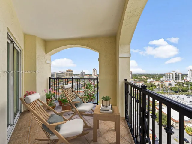 Rarely available, penthouse corner unit with magnificent views of Coral Gables and Downtown Miami skyline. Split floor plan 2 bedrooms, 2 bathroom condo in Gables View with a prime location, minutes away from Miracle Mile, close to UM and the airport. Enjoy beautiful north-west-facing views of the South Florida sunsets from the spectacular large corner terrace (access from living room & primary suite). Washer/dryer in unit. Resort-style amenities include a beautiful pool area, fitness center, billiard room, clubhouse facility & security. Quiet well managed building with reserves, and concierge (8am-11pm). 2 assigned garage parking spaces.
