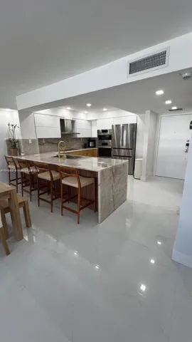 This stunning, fully remodeled apartment is the perfect blend of comfort and style, ready for immediate move-in. Featuring breathtaking ocean and beach views from the balcony and windows, the spacious layout includes 1 bedroom plus a versatile den that can serve as a second bedroom or office. It offers 1 full and 1 half bathroom with brand-new vanities, custom closets made from premium materials, and Italian porcelain tile throughout. The modern kitchen features sleek cabinetry, crystal quartz countertops, and Bosch appliances, including a washer and dryer. Additional highlights include contemporary interior doors, a covered parking space, and guest parking. Completely renovated with meticulous attention to detail, this apartment is a rare opportunity to enjoy luxury living by the beach.