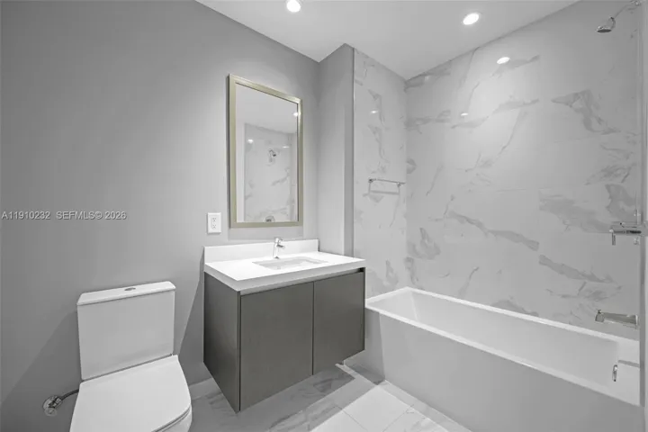 Experience elevated living at Paramount Miami Worldcenter, the tower celebrated as ‘the building with the most amenities in the world.’ This never-lived-in residence features a spacious 1-bedroom plus DEN with 2 full bathrooms, with the DEN easily adaptable as a second bedroom. Step off your private elevator into a grand foyer that opens to a bright, open-concept living space and a large dine-in terrace showcasing spectacular city and sunset views. The Snaidero Italian kitchen is outfitted with top-of-the-line Bosch appliances and quartz countertops, while 10-foot ceilings, floor-to-ceiling impact glass, and porcelain flooring throughout create a sense of modern elegance. The primary suite offers a spa-inspired marble bathroom, and the home includes a full-size washer and dryer for convenience.