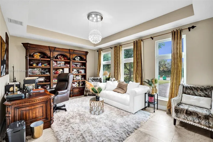 Discover lakeside luxury in Davie’s most exclusive gated enclave—limited to just 20 homes. This 5-bedroom, 4 bath corner-lot estate offers serene lake views and timeless sophistication with marble flooring, Monogram appliances, and a custom theater room. The spacious master suite occupies the upper level for ultimate privacy, while a saltwater pool and three-car garage complete this refined retreat. Offered furnished or unfurnished, this residence blends elegance, comfort, and convenience in a prime location just minutes from the Hard Rock Casino and Miami Dolphins Hard Rock Stadium.