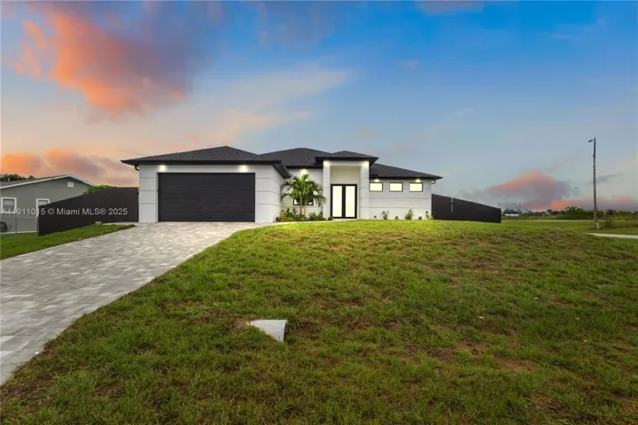 Stunning Custom Home in NE Cape Coral! Located just 3 minutes from Del Prado Blvd, this beautiful new construction offers easy access to restaurants, shopping centers, and schools.Featuring an open-concept layout filled with natural light, elegant porcelain tile floors, and a gourmet kitchen with sleek quartz countertops, stainless steel appliances, and custom cabinetry. Impact-resistant windows and doors provide peace of mind, energy efficiency, and lasting protection. Step outside to your private oasis — a spacious backyard with a sparkling pool, perfect for entertaining or relaxing under the Florida sun. Built by a reputable local builder, this home comes with up to 10 years of structural warranty, giving you confidence and long-term value.