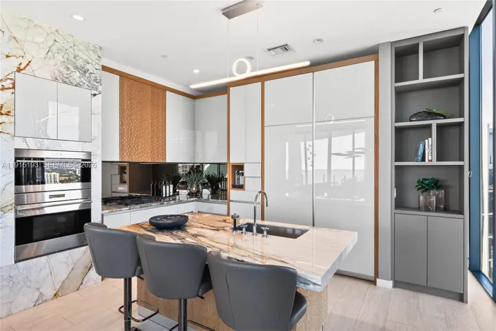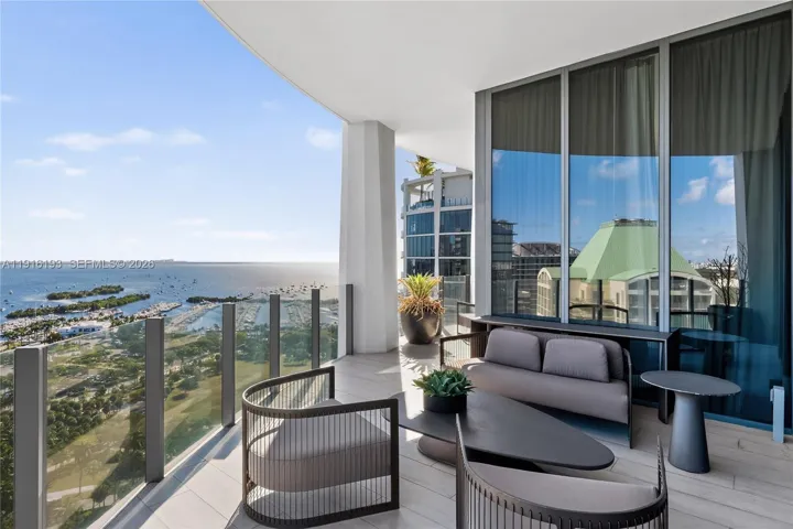 Positioned on a premier penthouse level, this residence showcases sweeping views of Biscayne Bay from its spacious, elegantly designed interiors. Striking 12-foot ceilings and light-filled living areas are enhanced by custom furnishings by Artefacto. A private elevator opens into a dedicated foyer leading to 3 beautifully appointed bedrooms and 3.5 baths. Park Grove is set on five acres of lushly landscaped grounds, featuring 50,000 SF of resort-style amenities. Residents enjoy multiple pools, a full-service spa, state-of-the-art fitness facilities, business lounge, theatre, outdoor gardens, pool side bistro, and close proximity to marinas. This exceptional development combines elevated architecture, unparalleled amenities, and a prime waterfront location in the heart of Coconut Grove.