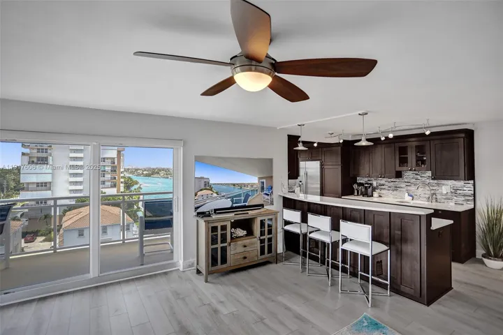 Beautifully updated 2-bedroom, 2-bath corner unit in highly desirable Hillsboro Beach is move-in ready. Recently freshly painted with new baseboards and newer flooring throughout, this residence offers a bright, modern feel from the moment you walk in. The floor plan features a spacious open kitchen with island seating, stainless steel appliances, stone countertops, and endless water views, making it the perfect space for entertaining. Impact glass surrounds the living area, filling the home with natural light and panoramic views. The primary suite includes a walk-in closet, upgraded vanity, and multiple additional storage closets. Enjoy electric window shades on your double sliding glass doors, allowing you to adjust the ambiance with the touch of a button. Step outside to your large wrap-around balcony and take in breathtaking views of both the Intracoastal Waterway and the beach with this Southeast & Western exposure—a rare combination of views that truly sets this unit apart. After a day at the beach or boating, unwind in the heated resort-style pool which sites on the Intracoastal. Boaters will love the community dock accommodating vessels up to 40 feet,with NO FIXED BRIDGES, offering quick and easy ocean access. Additional conveniences include laundry facilities on each floor, secure building access, and a peaceful, well-maintained community.This is the perfect coastal retreat—updated,stylish, & surrounded by the best of Hillsboro Beach living.Only 7 units per floor.