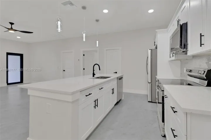 Brand-new 2025 duplex located in the highly desirable southwest area of Lehigh Acres, perfectly situated near Sunshine Blvd, Gunnery Rd, and Lee Blvd, offering easy access to Fort Myers, shopping, dining, and schools. Each side of this beautifully designed property features 3 bedrooms, 2 bathrooms, and a 1-car garage with laundry, showcasing modern finishes, tile flooring throughout, impact-resistant windows, and an open-concept layout that creates a bright and spacious feel. The kitchens are equipped with sleek cabinetry and ample counter space, ideal for both everyday living and entertaining. Built with durable concrete block construction and a stylish stucco exterior, this duplex sits on an oversized 0.30-acre corner lot with separate entrances on each side for added privacy and convenience. Perfect for investors or homeowners looking to live on one side and rent out the other, this new construction property offers exceptional quality, modern design, and strong income potential in one of Lehigh Acres’ most rapidly developing areas.
