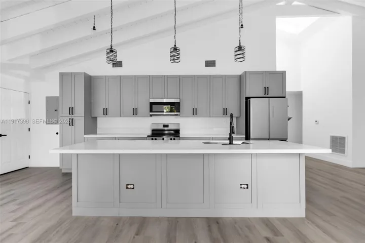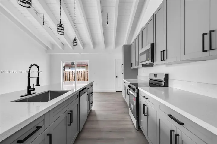 Fully remodeled 3BR home on a corner lot featuring a modern kitchen with sleek cabinetry and stainless-steel appliances, updated baths, new flooring, lighting, and fresh interior/exterior paint. Major upgrades include a 2022 roof, impact windows, new plumbing and electrical. Spacious private backyard. 2 on-site parking spaces plus street parking. Quiet, established neighborhood near shopping, dining, parks, and major roads. Move-in ready. Title delivered free and clear.