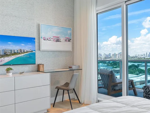 Experience elevated coastal living in this beautifully upgraded 2-bedroom, 2-bathroom penthouse at 1 Hotel & Homes South Beach—where exquisite design meets effortless luxury. Recently enhanced with new luxury flooring, custom designer wallpaper, motorized shades, and elegant Artefacto furnishings, this residence exudes sophistication at every turn. Sunlight pours through expansive windows, illuminating refined interiors and framing breathtaking panoramic views of the Miami skyline and shimmering coastline, creating a serene atmosphere that feels both inspiring and indulgent.