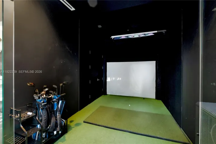 Amenities include two rooftop pools, three resort-style pools with towel service, spa with sauna, jacuzzi, red light therapy, massage chairs and beds, fitness center with boxing area, basketball, racquetball and tennis courts, yoga room, business center, party rooms, virtual golf, theatre room, and 24/7 valet, security, and front desk.