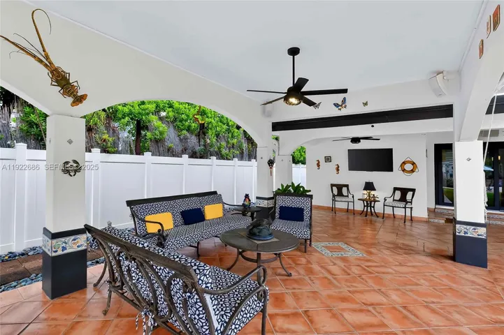 The backyard features: 60 feet water frontage, no fixed bridges, direct ocean access, 1,000+ square feet of covered terrace. Jet ski/Kayak platform with 3500 lift system included.
