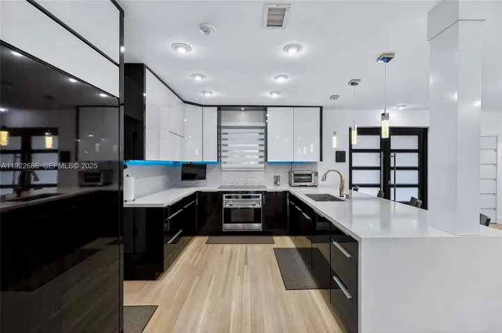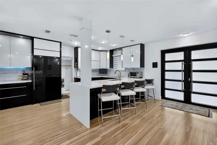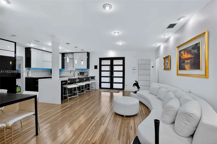 Discover the ultimate Boater’s Dream in comfort and convenience with this exceptional waterfront retreat direct access to open water, no bridges. This home is designed for those seeking a resort-style marine lifestyle. 5 bedrooms 5 baths (4 en-suite) with 3 separate entrances for guests or office. Larger than Tax Roll (2,730 SF as per Owner). Solid White Oak flooring throughout. Open Floor Plan combines kitchen, dining, living and family room into a single large space. Eurocraft Impact Doors and Windows throughout. Modern High-end gourmet kitchen features Twin Sub Zero 36″ Refrigerator and 36″ Freezer built-in, Bosch Dishwasher, Wolf oven, Thermador 36” induction cooktop, Concealed pantry and more. Within close proximity to Bal Harbor, South Beach, Mount Sinai and top-rated schools.