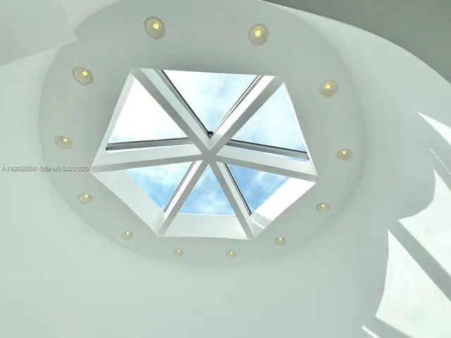 Outdoor living is elevated with a waterfront pool and hot tub, outdoor brick oven, covered entertainment patio with ceiling fan, and a 2-car supercar garage. Perfectly situated minutes from the beach, shopping, dining, Aventura, Bal Harbour, Miami International Airport, and South Beach. A modern fortress of design and technology—unmatched at this price point