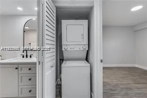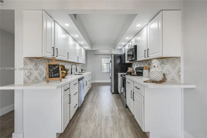 SHOW WITH CONFIDENCE! Unit features NEW Impact Windows throughout and a brand-new A/C system—major upgrades offering comfort, efficiency, and long-term value. Beautifully updated 2/2 with a redesigned modern kitchen (SS appliances, wood cabinets, quartz counters), renovated bathrooms, walk-in closet in primary bedroom, new vinyl floors, LED lighting, fresh paint, and IN-unit washer/dryer.
