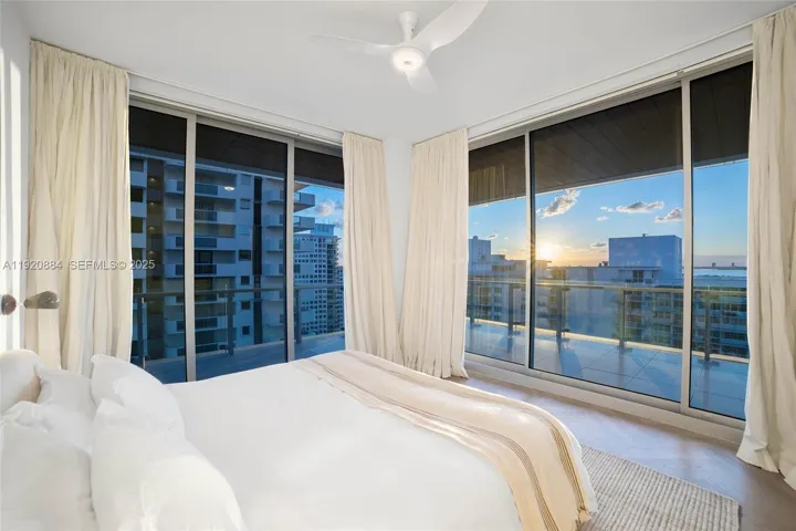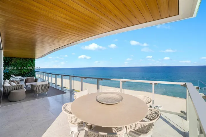 Rare-to-market oceanfront Sky Residence at 57 Ocean perched on the 15th floor with 12-foot-deep sunrise and sunset terraces showcasing panoramic ocean and city skyline views. This 4-bedroom, 5.5-bathroom home offers 3,443 interior square feet complemented by 1,581 square feet of outdoor living, all finished with warm wood-like ceiling accents that extend the home outward and create refined, seamless indoor-outdoor coastal living. A private elevator opens to a light-filled living area with 10-foot ceilings, floor-to-ceiling glass and marble & herringbone wood floors that create a sophisticated and inviting setting for everyday living. The Poliform kitchen features modern cabinetry, a solid marble waterfall island, marble countertops and backsplash, Sub Zero/Wolf appliances, wine refrigerator and a walk-in pantry. The primary suite includes a comfortable seating area, terrace access, generous walk-in closet and a spa-inspired bathroom lined in floor-to-ceiling natural stone with Poliform vanities, double shower and a floating tub. Each guest bedroom includes an ensuite bathroom for privacy and comfort. Ideally situated on Mid-Beach’s iconic Millionaire’s Row, 57 Ocean offers 5-star amenities including direct access to 220 feet of oceanfront, two cabana-lined oceanfront infinity pools, a holistic wellness pavilion spa with indoor and outdoor experiences, fitness center, poolside bar, library, club room with professional-grade kitchen, kids’ room and pool and beach services.