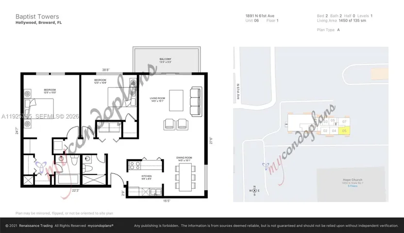 Bright and spacious 2-bedroom, 2-bath corner unit on the first floor, offering 1,451 sq ft of living space. Features include new premium laminate flooring, a new AC and water heater, a new electrical panel, updated ceiling fans, accordion hurricane shutters on all windows, and an in-unit washer and dryer. Baptist Towers is a well-maintained building with secure lobby access, nestled in a tranquil setting yet close to major highways and area attractions. The building has passed its milestone inspection and boasts fully funded maintenance reserves with a new roof (2024). One assigned parking spot right in front, and plenty of guest parking. 20 minutes to the beach, close to major roadways and area attractions! All ages welcome. Quick and easy association approval. No assessments! Rentals not permitted. Monthly maintenance covers water, trash, insurance, pest control, and reserves. Copies of recent four-point and wind mitigation inspections are available. Schedule your appointment today!