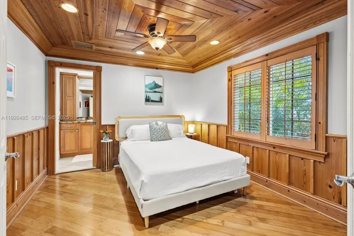 Discover this stunning 6-bedroom, 4-bath luxury villa in the highly sought-after “Old Hobe Sound” community. Designed for lasting comfort and security, this home boasts full impact windows and doors, a higher elevation, and thoughtful craftsmanship throughout. Step inside to elegant travertine flooring, soaring vaulted ceilings adorned with pecky cypress and wood coffering, and classic plantation shutters that add timeless charm.