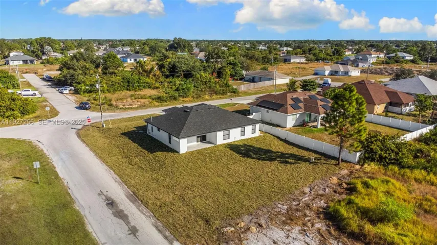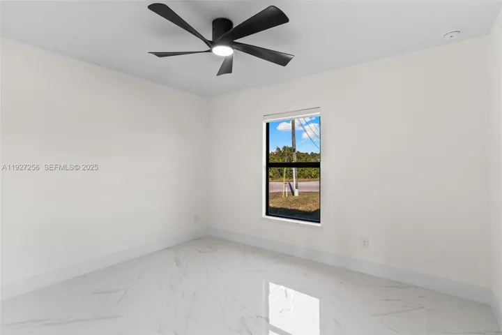 Welcome to this beautifully designed brand-new construction home located in the highly desirable Southwest Lehigh Acres. Offering 4 spacious bedrooms and 2 elegant bathrooms, this modern residence blends luxury, comfort, and functionality in every detail. Step into a bright open-concept floor plan featuring glossy porcelain tile throughout, soaring ceilings with a designer tray ceiling and LED lighting, and a striking modern ceiling fan that elevates the main living space. The gourmet kitchen is a true showstopper with quartz countertops, sleek white cabinetry, stainless steel appliances, and contemporary pendant lighting, perfect for both everyday living and entertaining. The primary suite offers a private retreat with a spa-inspired bathroom, showcasing a large glass-enclosed walk-in shower with premium tile, dual-sink vanity, and elegant black fixtures. Generously sized secondary bedrooms provide flexibility for family, guests, or home office space. Enjoy outdoor living with ample room to create your dream backyard oasis. Situated on a quiet street with new construction surrounding, this home offers peace of mind and modern Florida living at its finest. No HOA | Minutes from schools, dining, shopping, and major roadways. This is a must-see opportunity in one of Lehigh Acres’ fastest-growing areas!