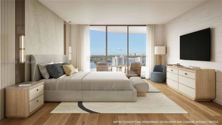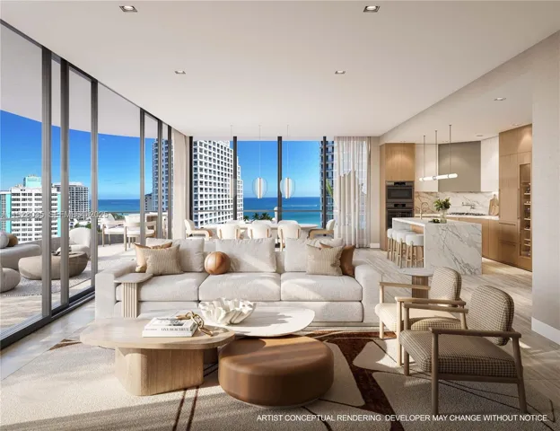 Framed by the Atlantic Ocean and Intracoastal in North Beach Village, one block from the Ocean on Fort Lauderdale Beach. Luxury interiors are designed by Adriana Hoyos Design Studio and feature sprawling 10’ ceilings, top tier appliances from Wolf & Sub-Zero including wine storage and gas cooktops, custom European inspired chef’s kitchen by Italkraft and expansive 12’ terraces with summer kitchens. A portfolio of curated amenities include a lobby café, resort pool & Jacuzzi, wellness center & spa with massage room, sauna, steam & cold plunge, beauty salon, state of the art fitness center, tranquil yoga lawn & movement room, rooftop lounge for sunset gatherings, pet spa and dog run, and multiple resident lounges. Yacht Club & Beach Club at The Conrad Fort Lauderdale Beach Hotel included.