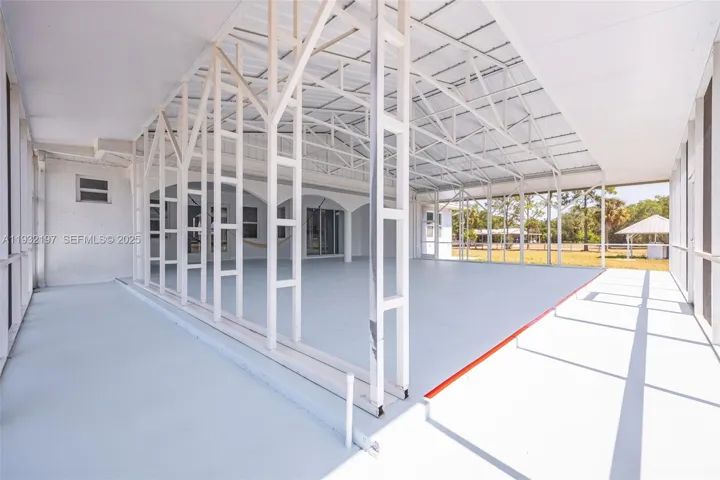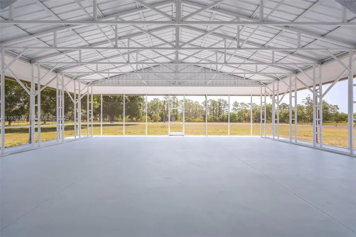 Outstanding in its Field! You will find this Custom Built 4 bedroom, 3 bath home placed in the middle of 4.85 acres of QUIET! Located down a peaceful, dead end road you will find this well built home with a metal roof and completely fenced offering years of carefree living. Inside you will find and easy to love floorplan and very spacious rooms. A well designed kitchen is the heart of the home offering an abundance of quartz countertops, a small island worktable, a gas stove (there is an electric plug installed behind the stove if you want to change to electric) and breakfast bar. High 10, 12 and 13 foot ceilings and 8′ doors throughout with abundant windows lend to plenty of natural lighting. Step outside onto the under truss back lanai and into a massive,14 gauge steel sturdy screened porch where possibilities are endless, party area, roller skating, this porch is amazing and is sure to please all. There is an abundance of outdoor electrical plugs, Nothing was overlooked with this solidly built home. A 45 ‘ container exist on the property and will convey. (One guest bathroom is completed, The master bathroom has room and plumbing for a tub and still needs vanities. The bathroom for the 2 bedrooms on the opposite side of the home still needs the vanities.) Seller is selling the home “AS Is”. Finish the bathrooms to your own style and enjoy a Tranquil Country Lifestyle.