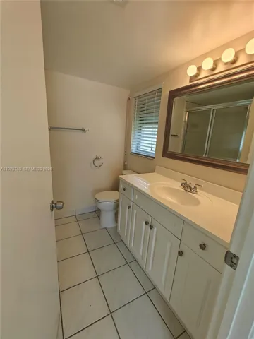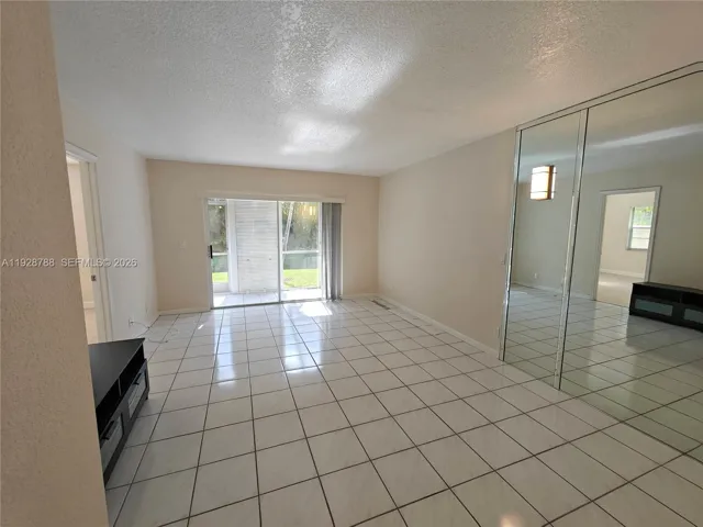 Very private, renovated first-floor corner unit with extra windows in the well-maintained Palm Village community. This bright, move-in-ready condo features updated kitchen cabinets, stainless steel appliances, a full-size washer and dryer, and newer A/C. Tile flooring throughout—no carpet—and fresh paint create a clean, modern feel. Enjoy a screened patio with roll-down shutters overlooking a quiet, south-facing garden area. Palm Village is a peaceful, well-kept community offering a large pool and a recently renovated, fully equipped fitness center with new machines. Assigned parking is conveniently located near the unit. The property is professionally maintained with a service contract covering all systems and appliances. Excellent landlord. Fast association approval.