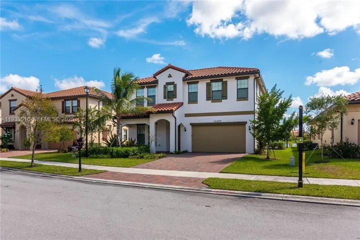 Luxury waterfront residence in the prestigious Heron Bay Estuary community, offering breathtaking water views and a fully fenced backyard. This thoughtfully designed home features a versatile fifth bedroom with French doors ideal as a bedroom or private den along with an expansive loft perfect for a family or media room. Enjoy serene water views from the covered lanai and extended patio. Interior highlights include impact windows and doors, tile flooring throughout the main living areas, brand-new carpeting, plantation shutters in every room, recessed lighting, and upscale lighting fixtures and ceiling fans. Motorized blinds enhance the doors leading to the lanai, while the primary suite boasts a custom designed walk-in closet and a tankless gas water heater. The primary bedroom and den/fifth bedroom are conveniently located on the main level. The gourmet kitchen is equipped with stainless steel appliances, a gas cooktop, and double ovens ideal for both everyday living and entertaining. Located just minutes from the main clubhouse. Heron Bay is a prestigious gated community offering two clubhouses, resort-style pools, tennis courts, two fully equipped fitness centers, and racquetball courts.