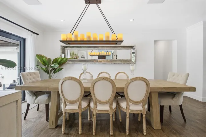 Nestled at the end of a quiet cul-de-sac in the exclusive gated community of Gables by the Sea, this 6-bedroom, 3.5-bath residence offers exceptional privacy, space, and refined living. A charming courtyard entry framed by lush landscaping welcomes you into bright, open interiors featuring impact-resistant windows and elegant wood-look tile flooring throughout.