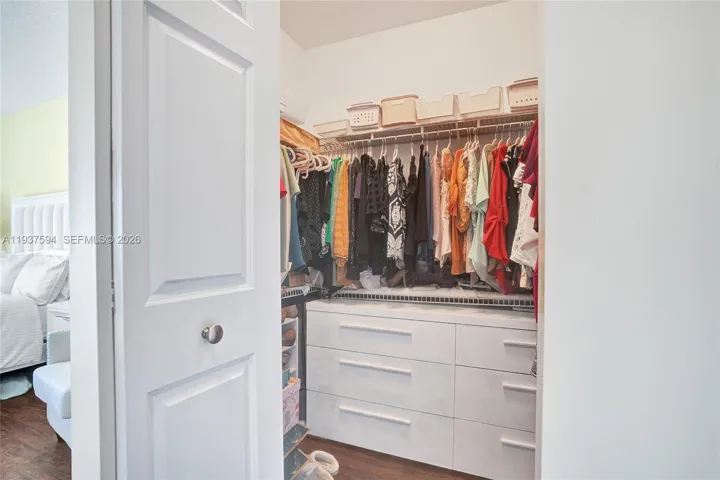 The second bedroom offers custom built out California closets for maximum storage.