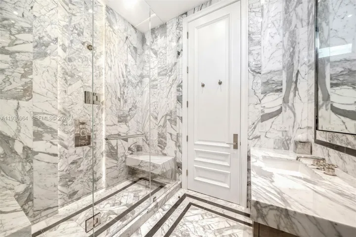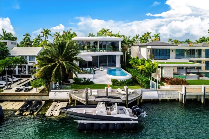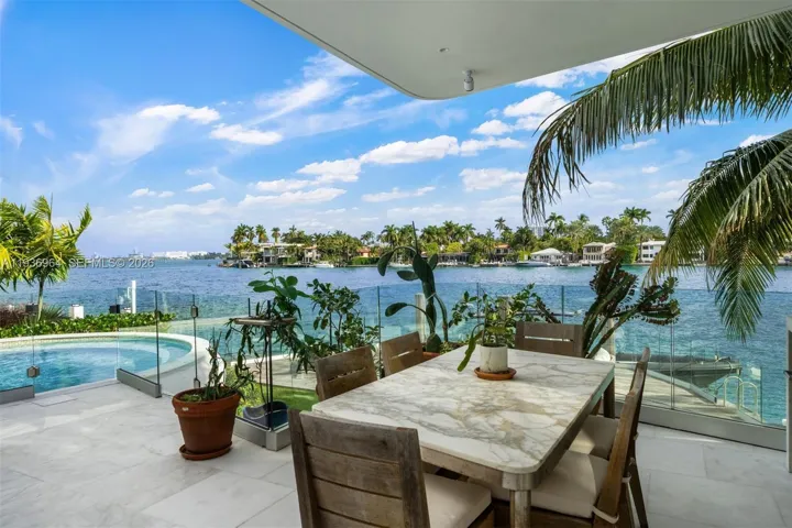 Built in 2018 & designed by DOMO Architecture, this extraordinary waterfront estate stands as the tallest residence on Dilido Island, offering architectural distinction, privacy & uncompromising luxury. Conceived for grand-scale entertaining, the home features executive-level security & soaring 12 foot ceilings with a fully integrated smart-home system. An exceptional use of luxurious marble throughout the interior & exterior creates a timeless, gallery-like elegance. The state-of-the-art kitchen, finished in striking Calacatta Gold marble & equipped with Wolf, Miele, & Sub-Zero appliances, anchors the home as a natural gathering space. Living areas flow seamlessly outdoors, embracing indoor-outdoor living with a resort-style pool, Jacuzzi, cabana, & a custom extra-large rounded Ipe dock, ideal for waterfront entertaining. Private bedroom suites embody modern luxury, featuring warm chevron oak floors, floor-to-ceiling sheer drapery, refined marble details, & Waterworks faucets and shower fixtures throughout. A dedicated cinema room with an 8K 125-inch projection screen & THX surround sound delivers a true private theater experience. Crowning the residence is a spectacular rooftop retreat with 360-degree water views of Downtown Miami and Miami Beach, complete with an award winning fully edible rooftop garden/farm. Additional features include a showroom garage (lift capable) & mature fruit & vegetable trees, completing this one-of-a-kind waterfront offering.