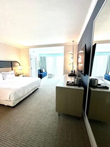 Bring yourself @luxury living experience at the Fontainebleau condo Hotel Resort. This remodeled suite has Outstanding direct views of bay and city skyline, private balcony with chairs and table, the perfect location for your vacation getaway. Unit comes fully furnished and equipped hotel style, offers full-service, vacation-style living, a king bed, living area with a sleeper sofa, and kitchenette. Large marble bathroom with enclosed shower and jacuzzi. Enroll in the hotel rental program & receive income or do your own airbnb/vrbo. The Fontainebleau Resort offers a wide range of luxury amenities on 22 oceanfront acres, including award-winning restaurants, the vibrant LIV night club, and the luxurious Lapis spa and state-of-the-art fitness center. Maintenance includes: AC, local calls, electricity, valet and daily free breakfast in owner’s lounge. Very few units available at this prestige location.