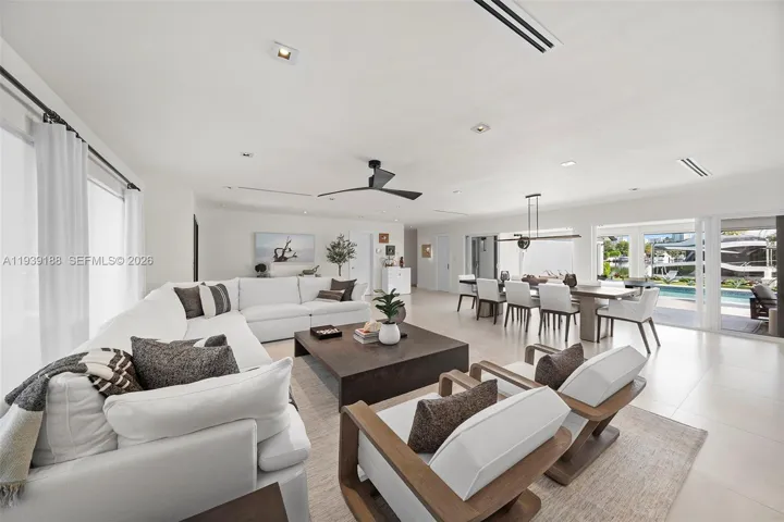 Stunning one-story turn-key waterfront home in the gated community of Golden Isles with ocean access and no fixed bridge. This move-in-ready property features 3 bedrooms, 3 bathrooms, large den / possible 4th bedroom and two-car garage, spacious living and dining areas with porcelain floors throughout. Enjoy stunning water views down the T-canal with beautiful sunrise views. Lushly landscaped backyard surrounds the summer kitchen, patio deck and heated/chilled pool, a perfect setting for year-round outdoor entertaining. Ideal for boating and yachting enthusiasts, the deep-water dock offers wide canal access and excellent depth for your vessel and water toys. The dock has a Tide Slide System to accommodate yachts up to 84 feet. Some of the upgrades include new roof (2017), new A/C systems (2024), Impact Windows and Doors, Motorized blinds, natural gas to property for the summer kitchen and the new whole home generator. Golden Isles is located between Miami and Fort Lauderdale, just minutes to world-class shopping at Aventura Mall and Bal Harbour Shops, as well as convenient access to both International and Private Airports. A rare opportunity to own a turn-key waterfront home offering luxury, comfort, and the ultimate South Florida waterfront lifestyle.