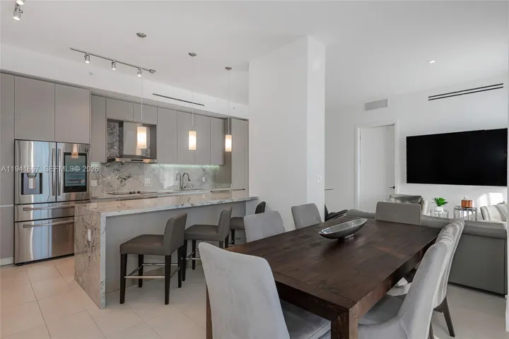 Features include an Italian-designed kitchen with Smart Samsung appliances, frameless rain-shower bathrooms, walk-in closets, and in-unit washer/dryer. Includes 2 assigned parking spaces, a rare find in South Beach.