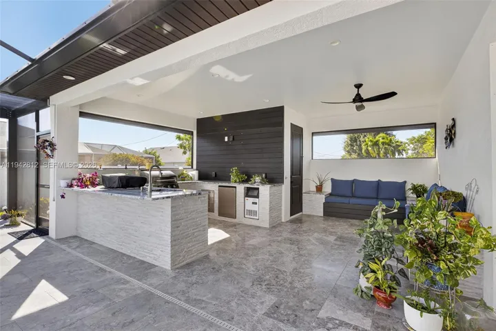 Step outside to your private oasis featuring a resort style salt water heated pool, outdoor kitchen with bath and covered living area- ideal for year round Florida living. Fenced yard with large storage shed.
