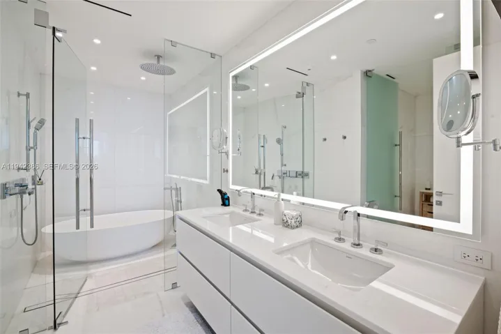 Move-in-ready waterfront residence at Aston Martin Residences featuring 2 bedrooms plus a convertible den with a built-in Murphy bed and 3 full bathrooms. Furniture shown is negotiable. This 2,095 total SF center unit features over $150,000 in upgrades, a private foyer entry with no neighboring units, Thassos marble floors, expansive terraces, and floor-to-ceiling windows showcasing panoramic ocean, bay, and Miami skyline views. Chef’s kitchen with Gaggenau appliances and center island. Includes 1 assigned valet parking space and 20 monthly guest valet vouchers. Residents enjoy 42,000 SF of world-class amenities on floors 52–55, including an infinity pool, spa, fitness center, marina, and concierge.