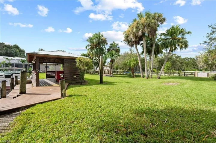 Welcome to your waterfront retreat offering lasting durability and abundant space. Built with solid concrete construction and a metal roof, this 3-bedroom, 2-bath home spans 2,014 sq. ft. and sits on a rare double lot featuring 130 feet of freshwater canal frontage with direct Gulf access. Nestled on a quiet, paved private road, the property provides exceptional privacy and a well-maintained, peaceful setting. Inside, vaulted ceilings in the living room, family room, kitchen, and primary bedroom create an open, airy feel, while the guest bedrooms feature nine-foot ceilings for added comfort. The three-car garage with eight-foot insulated doors provides plenty of room for vehicles, storage, or hobbies. The property has NEVER FLOODED! Designed for relaxation and entertaining, the outdoor living area includes a heated pool and spa, an outdoor kitchen with electric and plumbing, and a boat dock complete with seawall and cabana. Two fully fenced yards—front and back—offer ample space and privacy, beautifully complemented by a tranquil koi pond and outdoor shower. With no HOA fees, direct water access, and spacious grounds, this home combines coastal living with everyday convenience. It’s an outstanding opportunity to customize and enjoy a unique waterfront lifestyle.
