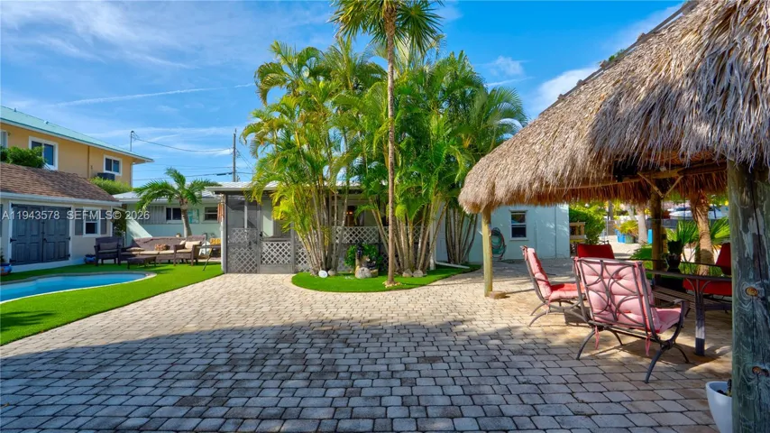 Beautiful Double Waterfront Lot in Prestigious Plantation Key Colony. This stunning 4-bedroom, 2-bath waterfront home sits on a Rare Double Lot with a Private Boat Ramp & Boat lift. Step outside to your Private Oasis complete with a Private Tiki hut – Gorgeous secluded in-ground Pool and Cabana Hut Bungalow – The open-concept kitchen features Granite countertops and stainless-steel appliances, ideal for effortless entertaining—Perfect for Boaters and outdoor enthusiasts. Tucked away in a quiet neighborhood, yet just minutes from restaurants, shopping, and top-rated schools, this home truly offers the best of island living.