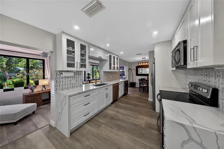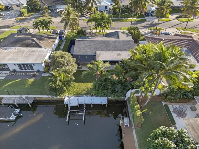 Welcome to Garden Isles, conveniently located near the beach, Pompano Pier, shopping, and restaurants. This 2-bedroom, 2-bath home with a spacious enclosed patio is situated in a desirable neighborhood primarily consisting of waterfront properties, often compared to the charm of Venice, Italy. Half the garage is now a laundry room with AC bringing it to 1,710 sq ft under air. The backyard offers a private, serene setting with expansive water views both day and night. The kitchen (2024) and bathrooms (2020) have been recently remodeled. Major updates include a newer roof (2019) and impact windows (2024). A/C and water heater (2020). Seawall approximately 49 ft in length, dock approximately 28 ft in length. A new 10,000 lb boat lift installed in 2021, making this home ideal for boating enthusiasts. The one-car garage has been converted to a storage area but can easily be reverted to a garage if desired. The home is available fully furnished; TVs are excluded from the sale price. Property is available to rent at $4,600 per month annual lease only. 50% credit of paid rent will go to the tenant if they decide to purchase.