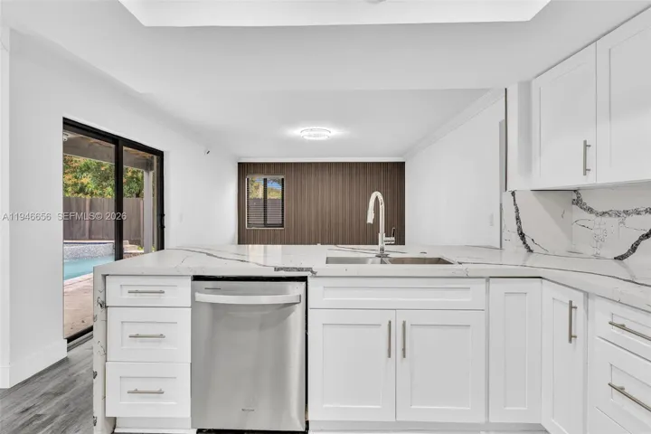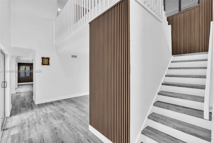 Welcome to The Moors – Fully renovated 2-story dream home in gated community! Located near the Palmetto Expressway, this 4BD/3BA home features a spacious loft, new roof (10-year warranty), impact windows, waterproof laminate flooring, renovated bathrooms, The updated kitchen has quartz counters, wood cabinets, stainless steel appliances, and a pass-through to the living area. One bedroom and full bath are on the first floor; remaining bedrooms and loft upstairs. Oversized master with walk-in closet and luxurious bath with tub and shower. Enjoy 24/7 security, low HOA, and resort-style amenities: clubhouse, gym, guesthouse, and lake great for fishing. Covered patio and pool-sized yard.