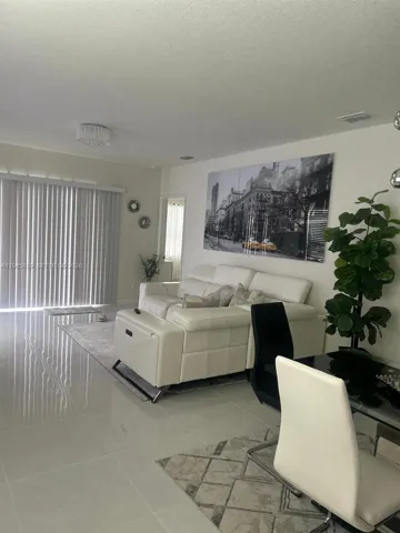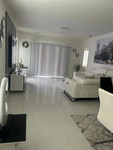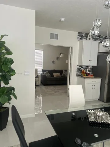 Beautifully upgraded waterfront home featuring porcelain tile flooring throughout and a bright, open-concept layout designed for comfortable living and entertaining. The modern kitchen showcases white cabinetry, granite countertops, stainless steel appliances, a spacious center island, and ample storage. The light fixtures add a contemporary touch and enhance the home’s natural light.