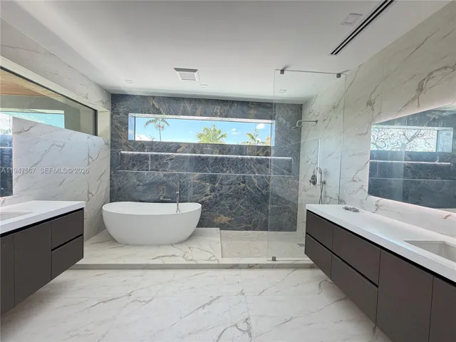 BRAND NEW 2026 CONSTRUCTION- To Be completed April/May 2026. 3347 SQ/FT UNDER AC, AND 4249 TOTAL SQ/FT. Showcasing elevated tropical modern design in a solid all-concrete residence built for strength, durability, and longevity. Enter through a dramatic double-height foyer highlighted by a glass staircase and designer accent walls. The main level offers a seamless open-concept layout with expansive living, dining, and kitchen spaces, plus a full guest bedroom with en-suite bath—ideal for guests or multi-generational living. Upstairs features three additional bedrooms, including a spacious primary suite, a versatile loft for an office or lounge, custom walk-in closets in every bedroom, and a generous walk-in pantry. Outdoors, enjoy a private saltwater heated pool and spa, BBQ area great for family gatherings and entertaining. Located in Tarpon River, a highly desirable neighborhood just minutes from Downtown Fort Lauderdale, the beach, and the airport.