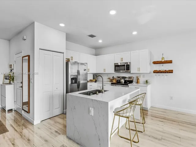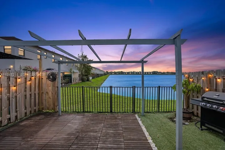Wake up to lake views every morning in this stunning 2021-built townhouse nestled inside Paseos Via Ventura, one of Miami’s newest gated communities with resort-style amenities. The private outdoor space is truly one of a kind: turf, pergola, outdoor fans, wood planking, and a direct lake view that makes every evening feel like a retreat. Inside, no detail was overlooked – quartz waterfall island, electric fireplace, updated lighting, tile, and vinyl wood flooring throughout, and an upgraded washer/dryer. The attached garage and low-maintenance lifestyle make this an easy yes for the discerning buyer. Less than 1 mile to groceries, under 2 miles to I-95, and 3 miles to Aventura Mall. The community HOA includes pool, gym, clubhouse, business center, BBQ area, children’s play area, and 24/7 security – resort living at a fraction of the cost. This one checks every box. Schedule your private showing today.