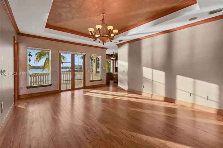 Waterfront point lot with spectacular views, with a grand home boasting high ceilings and large, spacious rooms. This sprawling home is perfect for entertaining and family-friendly, with an extra-large kitchen, an open floor plan, and water views. The entertainment extends into the backyard with a pool and bar area. The private dock has easy access to the Intracoastal and can accommodate larger boats without blocking the view from the home. The house has a maid’s quarters with a full bathroom. The garage is spacious, and the property is gated. The home is a must-see. Unfurnished, freshly painted inside and out, it is available for immediate occupancy. Close to shops and restaurants. Great location.