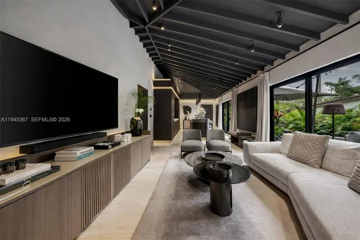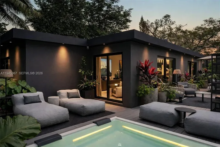 Striking contemporary residence ideally situated in the heart of Coconut Grove, thoughtfully redesigned with an emphasis on quality, design, and privacy. This residence showcases an Italian-crafted kitchen with professional-grade Fulgor Milano appliances, custom MisuraEmme closets, and high-end Effepi R. fixtures throughout. Elegant materials define the interiors, including Turkish Veincut travertine floors, limewashed walls, and sleek VivaPorte architectural doors, creating a refined, cohesive modern aesthetic. Offered with the option to purchase fully furnished for authentic turn-key living. The outdoor environment is equally compelling, featuring multiple curated spaces for entertaining and relaxation. Highlights include Talenti outdoor furnishings, a private firepit lounge, lush new tropical landscaping, and a built-in Italian jacuzzi. Wellness and technology are seamlessly integrated with a Gruppo Tresse spa system, upgraded Buster + Punch lighting, and Sony systems installed in every room. Fully gated and exceptionally private, the property offers a tranquil retreat while remaining moments from the best of Coconut Grove. With room to add a pool and expand, this is a rare opportunity to own a design-forward home created for elevated modern living.
