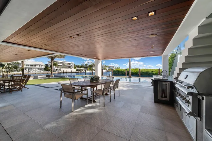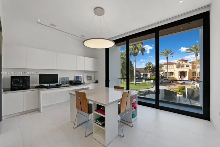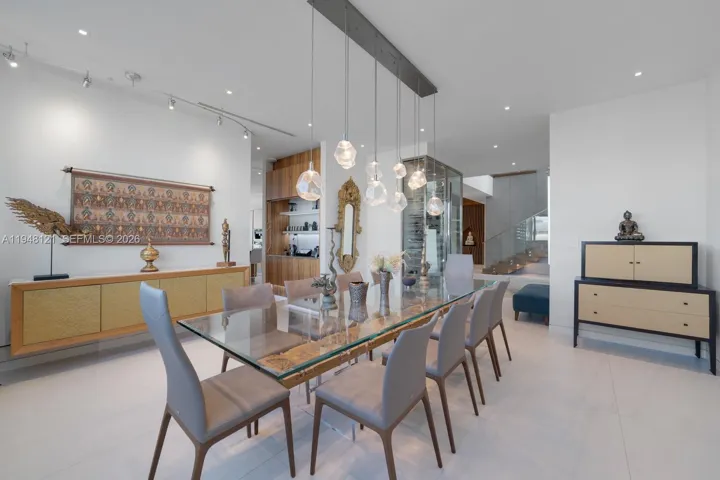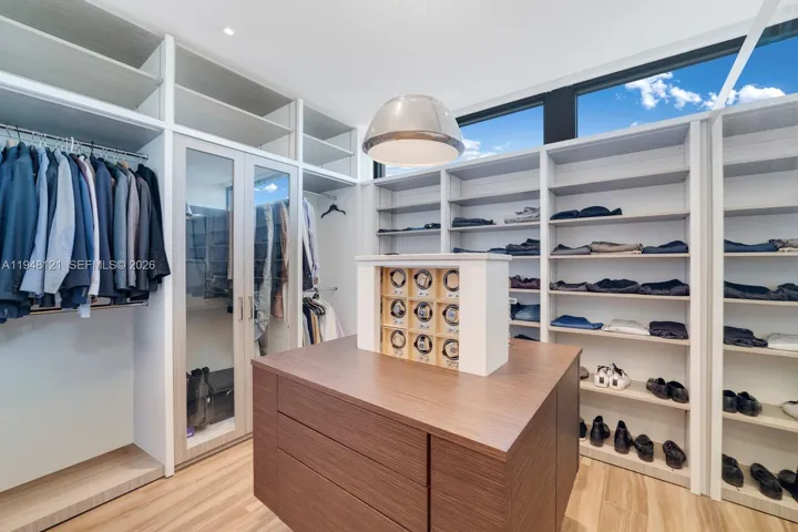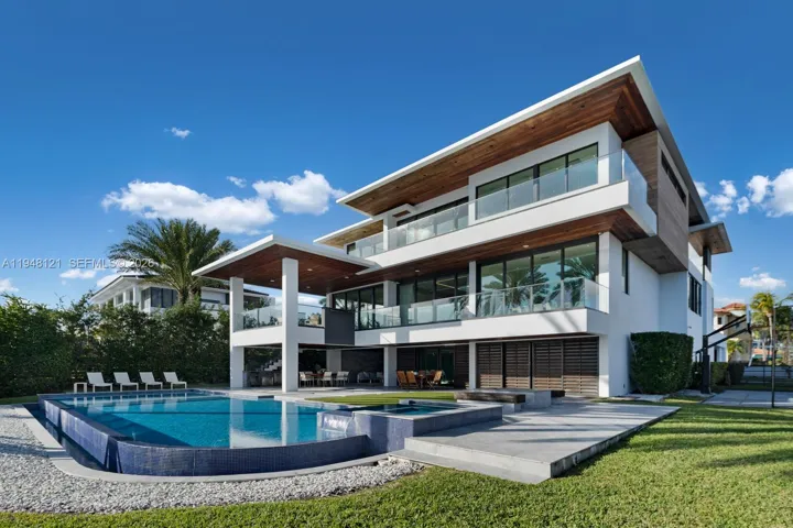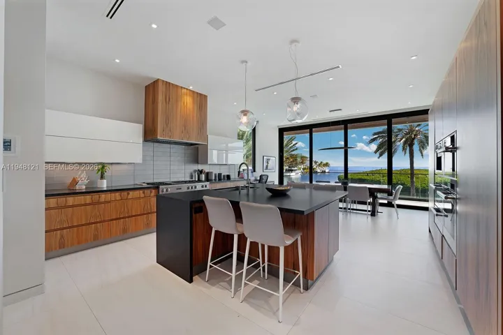 Spectacular bayfront modern family home on a rare corner-point lot with 300 feet of prime waterfront in an unbeatable location. This chic family home is perfect for entertaining, featuring a resort-style pool and spa, a built-in BBQ, fire pit lounge, outdoor kitchen, expansive waterfront terraces, and a basketball or volleyball court by the water, creating a one-of-a-kind backdrop for both relaxation and play. The property features two private docks, one accommodating over 100′ boat, another with a 30,000 lb boat lift, and effortless access to Biscayne Bay and the open ocean. Inside, the home offers a gourmet kitchen with a huge island and a large waterfront-facing area for casual meals. The butler’s pantry, formal dining room, and temperature-controlled custom wine wall are perfect for entertaining. There are seven bedrooms and 8.5 baths, filled with natural light and clean contemporary design. Five bedrooms are upstairs, each with a private bath, walk-in closet, and covered terrace overlooking the water. The primary bedroom and bath have fantastic views of the bay, and the bathroom features a spa sanctuary vibe, with a free-standing tub and a sauna. An elevator connects all levels for everyday ease. This is a true boater’s dream in a sought-after neighborhood close to Gulliver Prep, built in 2018 by renowned Calil Architects. Private, dramatic, and impossible to replicate—this is luxury waterfront living at its best. Gated community, and home in an unbeatable location.