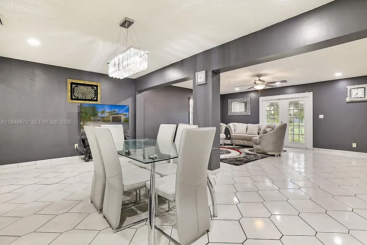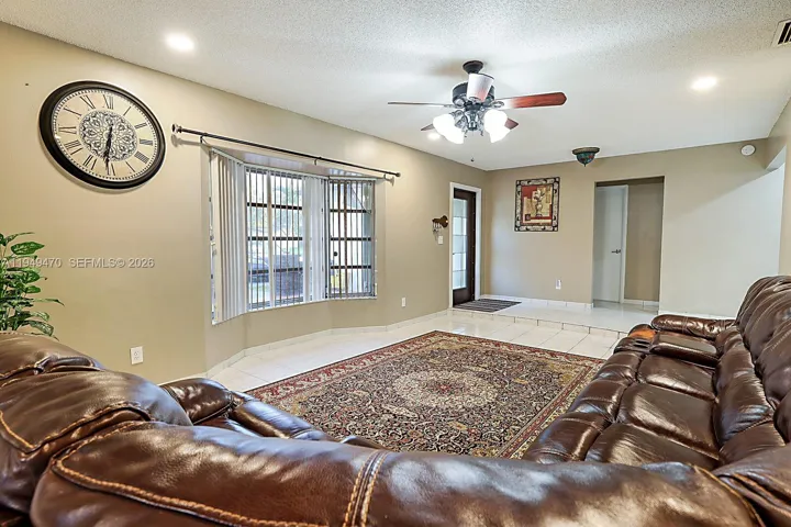 Rare opportunity to own one of the largest homes in this desirable Pembroke Pines neighborhood. This spacious 3-bedroom, 2-bath,one car garage residence offers approximately 2,377 square feet of living space, making it a true standout in the area. The thoughtfully designed open-concept layout features a seamless dining and living area ideal for entertaining, along with an expansive open family room that serves as the heart of the home. The updated kitchen and bathrooms showcase modern finishes, while a newer roof (2014) adds long-term value and peace of mind. With a versatile floor plan offering the potential to convert to up to 5 bedrooms, this home provides exceptional flexibility. Accordion shutters throughout enhance both convenience and storm protection. Enjoy a beautifully sized backyard with no rear neighbors—backing to a serene open field for added privacy and tranquil views. No HOA, offering complete freedom and convenience. Circular driveway with room for multiple cars leads to a 1 car garage.