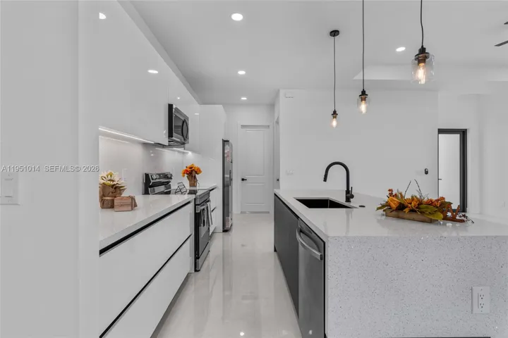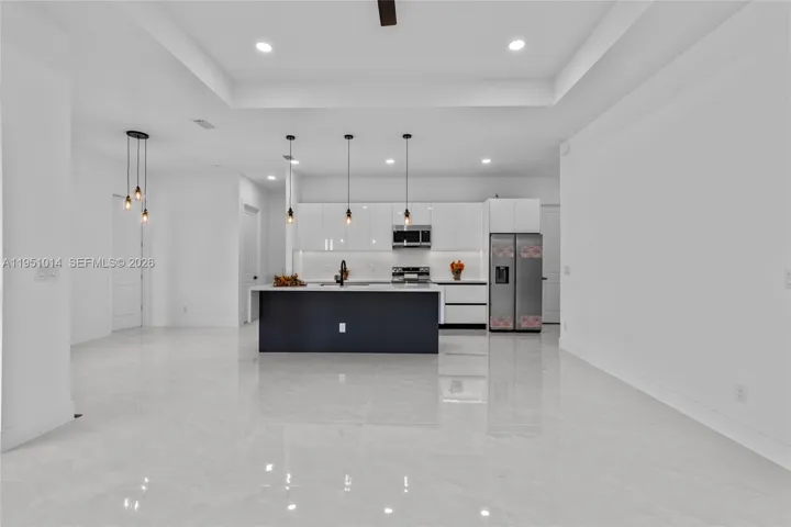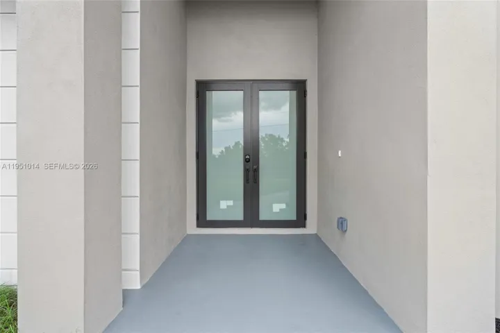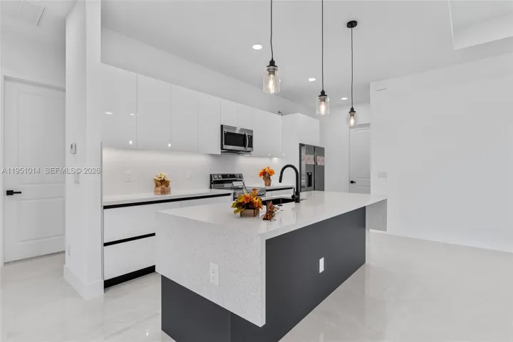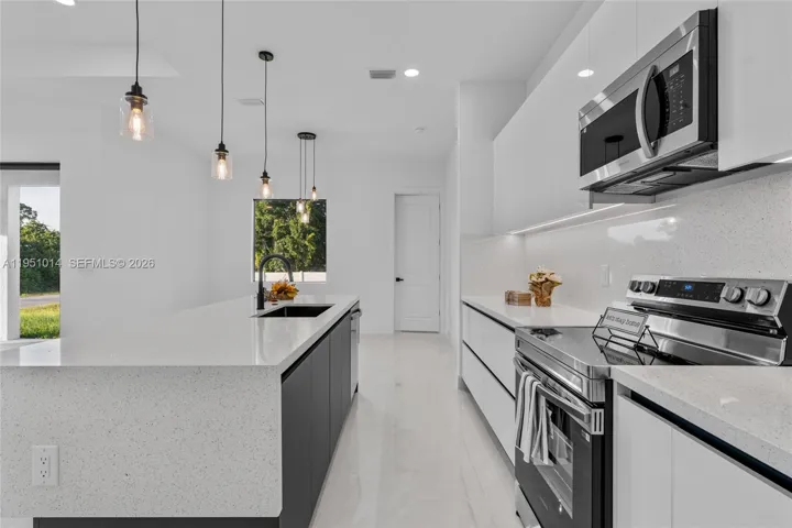 New construction home featuring 3 bedrooms plus a den and 2.5 bathrooms, perfectly situated on a desirable corner lot in Lehigh Acres, Florida. This contemporary residence offers a thoughtfully designed layout that blends comfort, style, and functionality. The home includes three spacious bedrooms and two and a half bathrooms, highlighted by a convenient guest bath with exterior access. A versatile den provides the flexibility to be easily converted into a fourth bedroom or used as a home office. Enjoy the added convenience of a dedicated in-house laundry room. Inside, elegant porcelain flooring flows throughout the home, paired with sleek quartz countertops in the kitchen. The modern kitchen is a true centerpiece, featuring stainless steel appliances, contemporary cabinetry and fixtures, and an impressive waterfall edge island. Ideally located near shopping and restaurants, this home offers everyday convenience in a prime setting. Don’t miss the opportunity to own this beautifully crafted home. Call today to schedule your private showing and make this exceptional property yours.