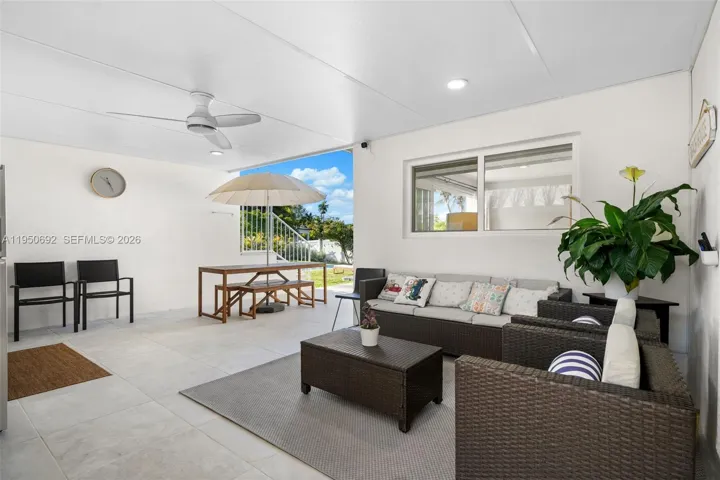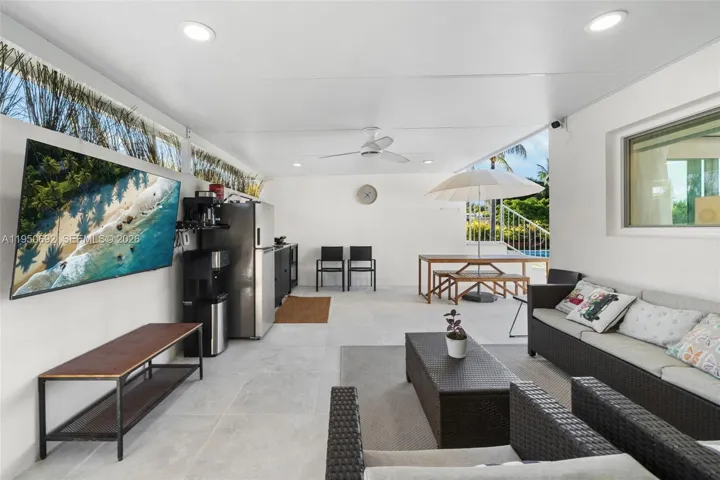 Experience the best of Miami Beach waterfront living in this beautifully modernized 4BD/3BA gated residence set on a 9,000 SF lot with 60 FT of water frontage, a private dock, a brand-new seawall, and no fixed bridges—ideal for boating enthusiasts. The home features light-filled interiors, impact glass throughout, and a thoughtfully designed open floor plan, while the gourmet gas kitchen with stainless steel appliances flows seamlessly into the main living areas. The primary suite offers a walk-in closet, a spa-like bathroom with a separate soaking tub, glass-enclosed shower, dual vanities, and direct access to the backyard. The main residence is complemented by a newly built detached guest house with an additional bedroom and bathroom (2,311 sq ft combined)—perfect for extended family, or home office. The outdoor space also includes a heated saltwater pool, hot-water shower, and a spacious covered patio with outdoor kitchen for effortless entertaining.