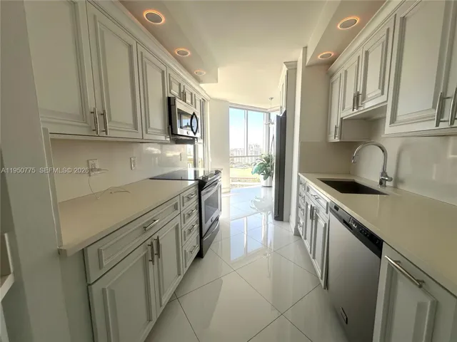 GORGEOUS HIGH FLOOR 2/2 unfurnished unit with tile floors throughout, stainless appliances, oversized master bedroom with amazing closets. Beautiful water view from bedroom and terrace. Gorgeous building, renovated w/ wonderful amenities as gym, bbq area, private pool, billiards/game room, party room, tennis, concierge, 24h valet.